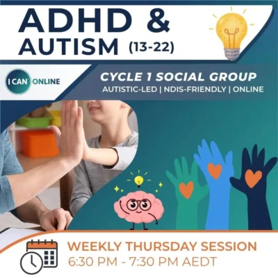 The ADHD and Autism Group offers an empowering ADHD support program designed specifically for young people. This fun, engaging, and supportive group helps young people understand their unique ADHD brains while building essential skills for success. Through interactive activities and group discussions, teens will develop crucial abilities such as time management, organisation, emotional regulation, and social confidence. The program also highlights ADHD strengths like creativity, problem-solving, and resilience, helping participants embrace their unique abilities. Led by experienced mentors, the I CAN Online Group provides a safe and encouraging space where mentees can connect, share experiences, and grow alongside peers who truly understand them.