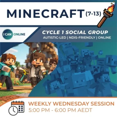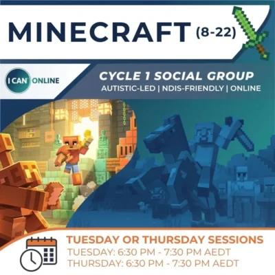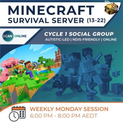 Our Minecraft Discussion Group offers a relaxed and supportive space for young people to connect with others who share their interest in Minecraft. Through themed discussions and creative prompts, participants are encouraged to chat, share ideas, and build social confidence. Please note that our Minecraft Discussion Special Interest Groups use games like Minecraft as a way to initiate conversation and connection – there’s no actual gameplay, server access, or sharing of gamer tags involved. If your young person is interested in accessing our supported Minecraft server, please take a look at our Minecraft Social Server Sessions.