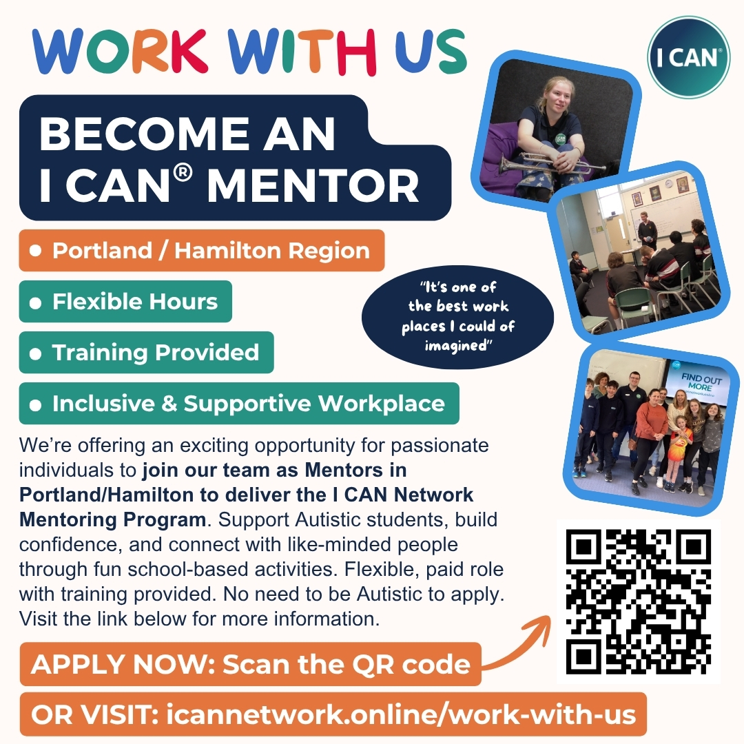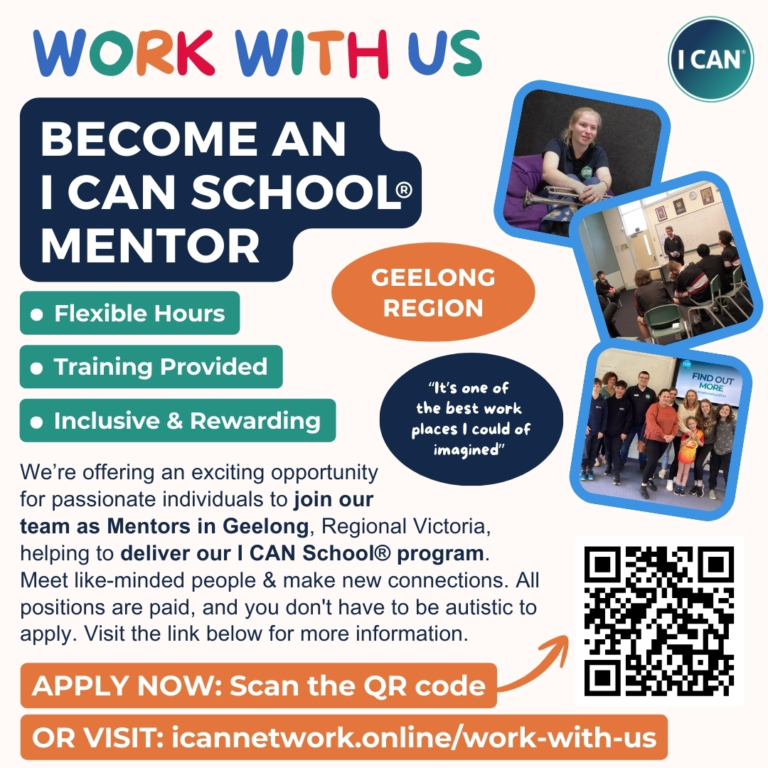 I CAN Network is Australia’s largest Autistic-led organisation. We deliver group mentoring programs in schools and online to develop self-acceptance, optimism, belonging and confidence in autistic/ neurodivergent young people. We share our insights from mentoring via professional development workshops for educators.